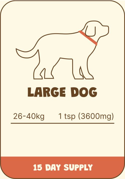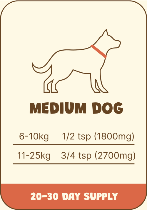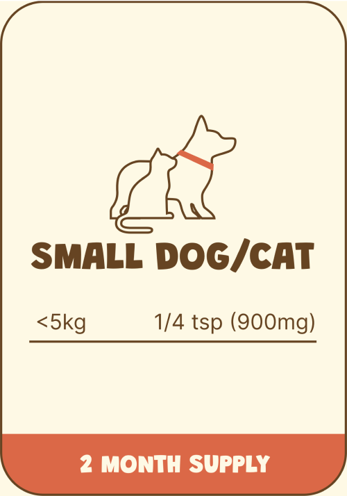 Using a standard teaspoon, measure the appropriate amount of powder based on your dog or cat’s weight. Sprinkle the powder over their regular food (can be kibble, canned, cooked, raw, etc.) or mix it into warm water or a clear stock for them to enjoy as a broth alongside one of their daily meals. Feel free to get creative but we recommend starting with a smaller amount and gradually increasing to the full dosage over 1-2 weeks.