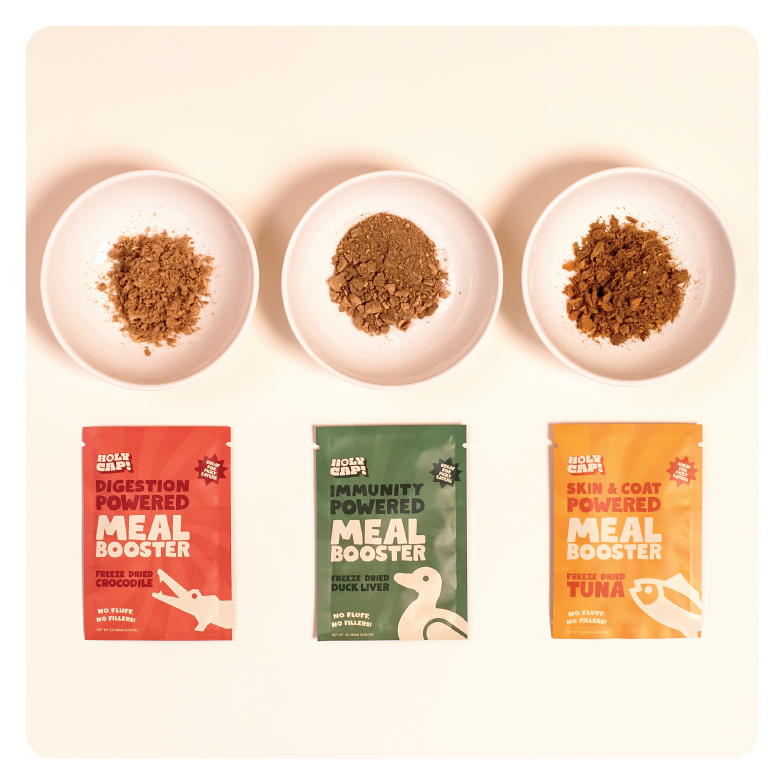 We suggest sticking to one HOLY CAP supplement per meal as each supplement is specifically formulated for its desired effect (ie. Immunity, Digestion, and Skin & Coat).